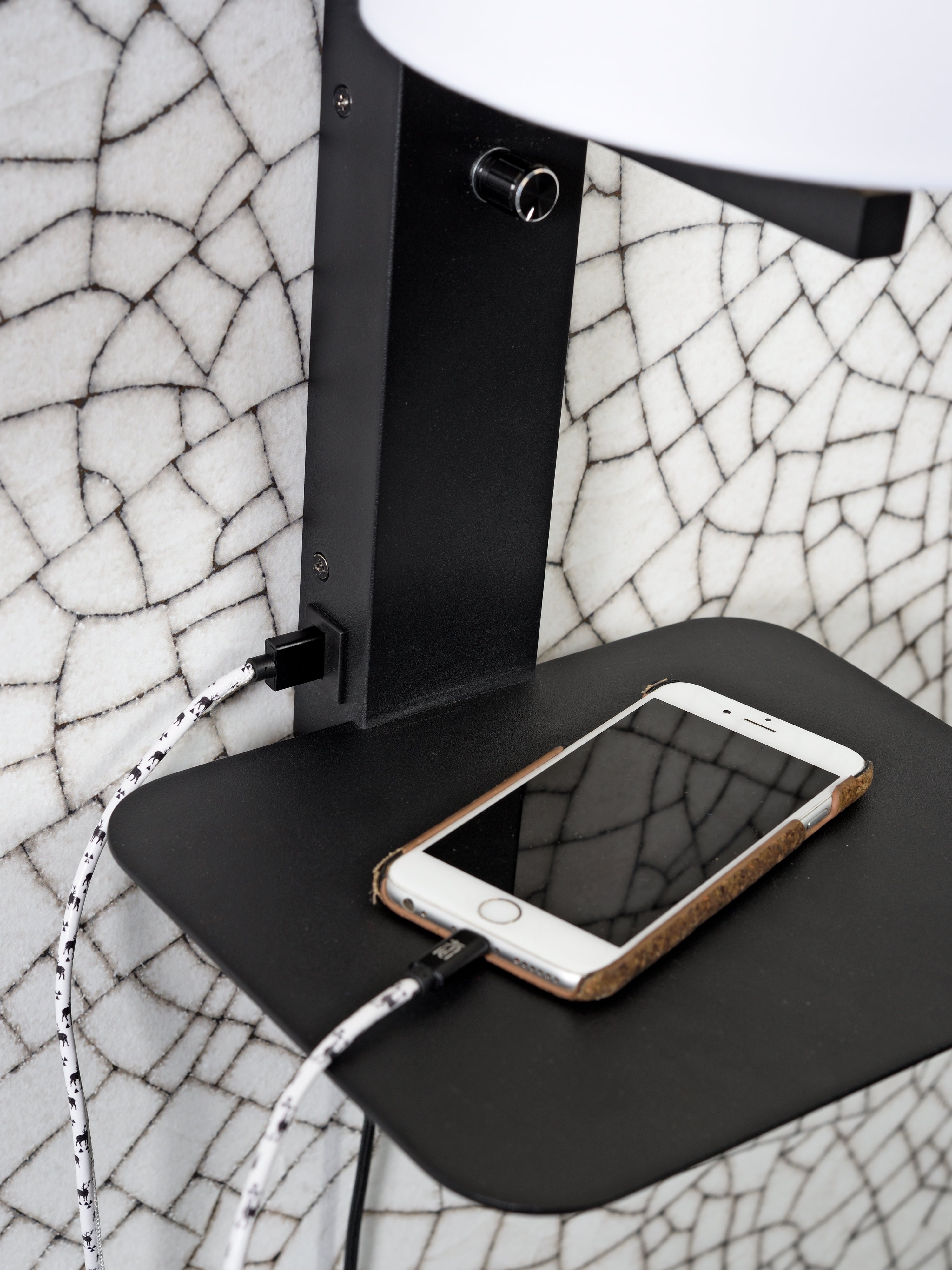 Een wandlamp die meer doet dan alleen verlichten. De Florence wandlamp combineert klassieke vormgeving met moderne gemakken – van de zwarte metalen basis tot de sfeervolle textiele kap en slimme functies zoals een geïntegreerde USB-poort en draaibare LED-leeslamp.