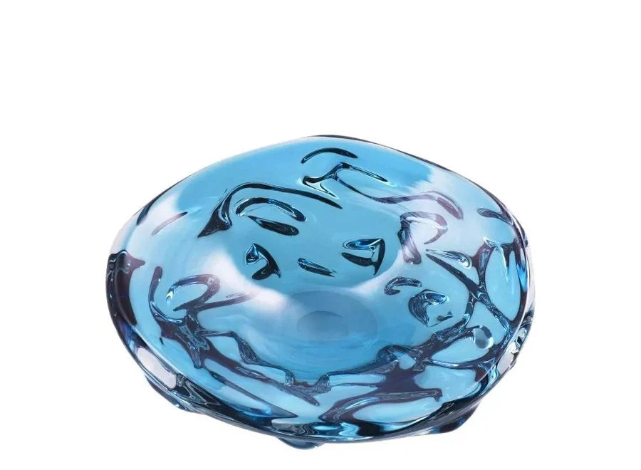 Eichholtz Kane Glass Bowl – Handgemaakt Sculptuur in Diepblauw Glas