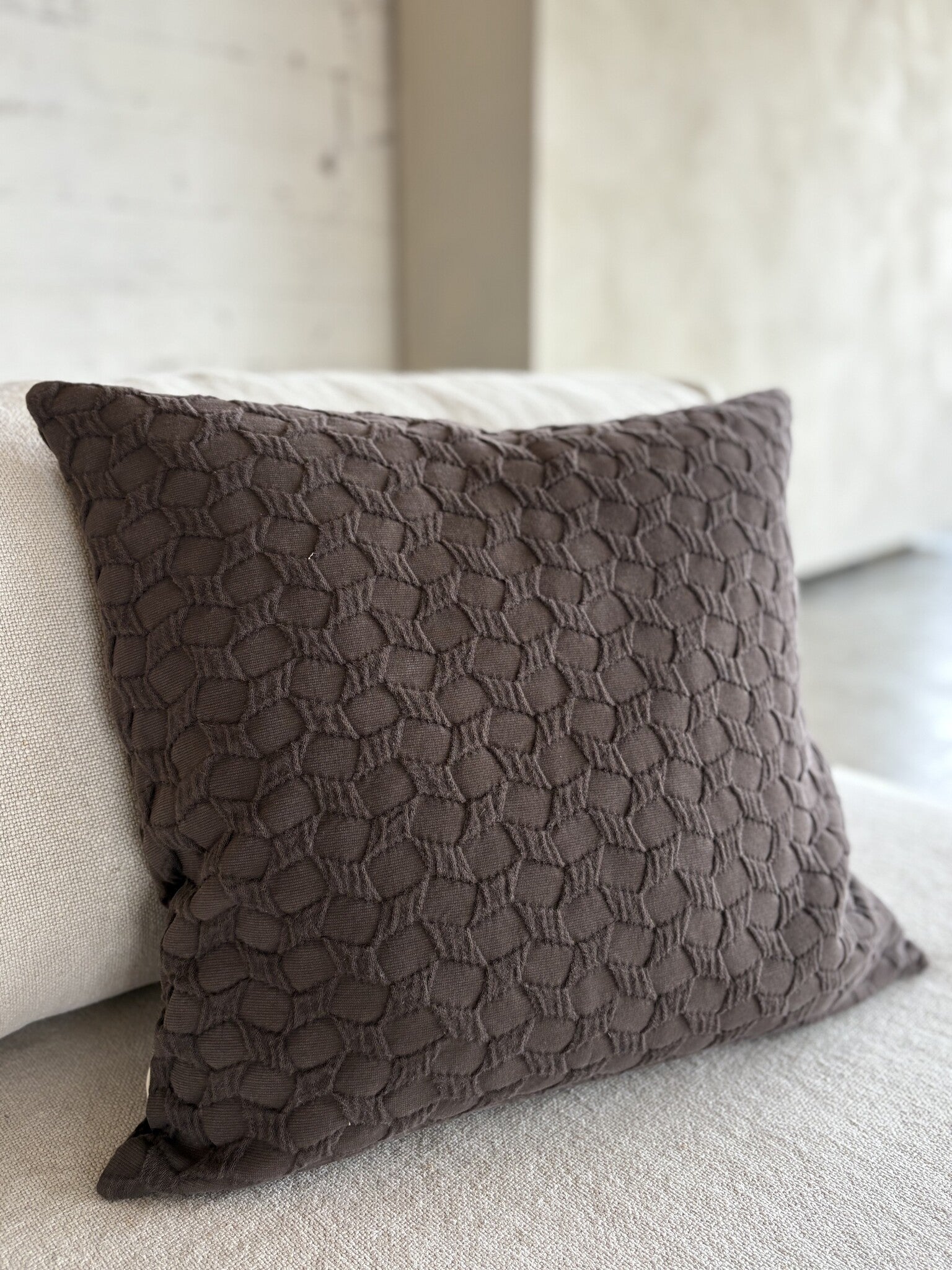 Sierkussenhoes Ella 50x50 cm – Jacquard Biokatoen met 3D Geometrisch Motief | Studio Femme Home