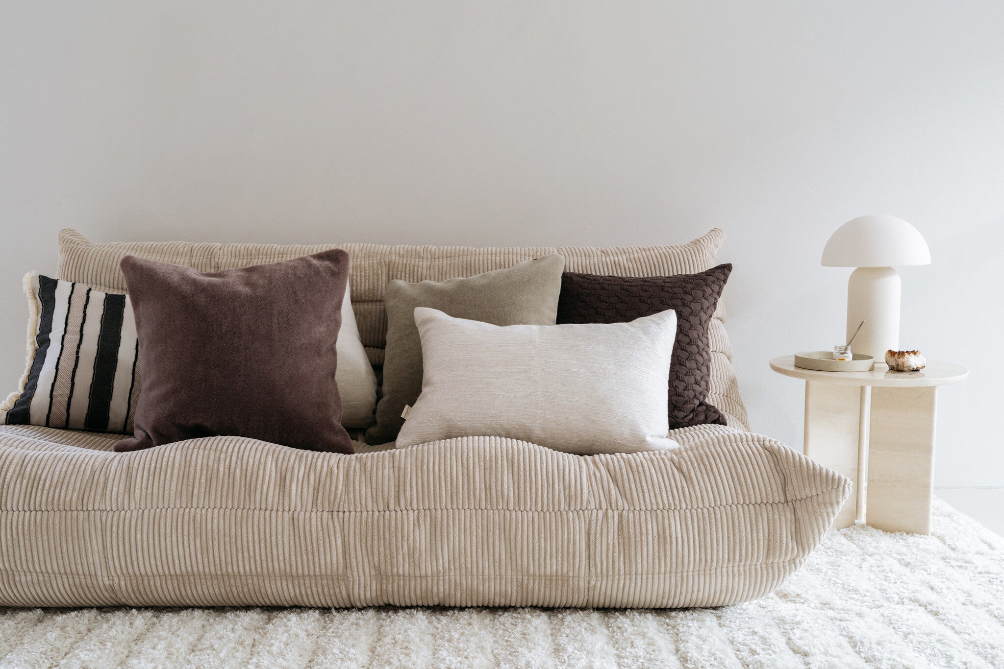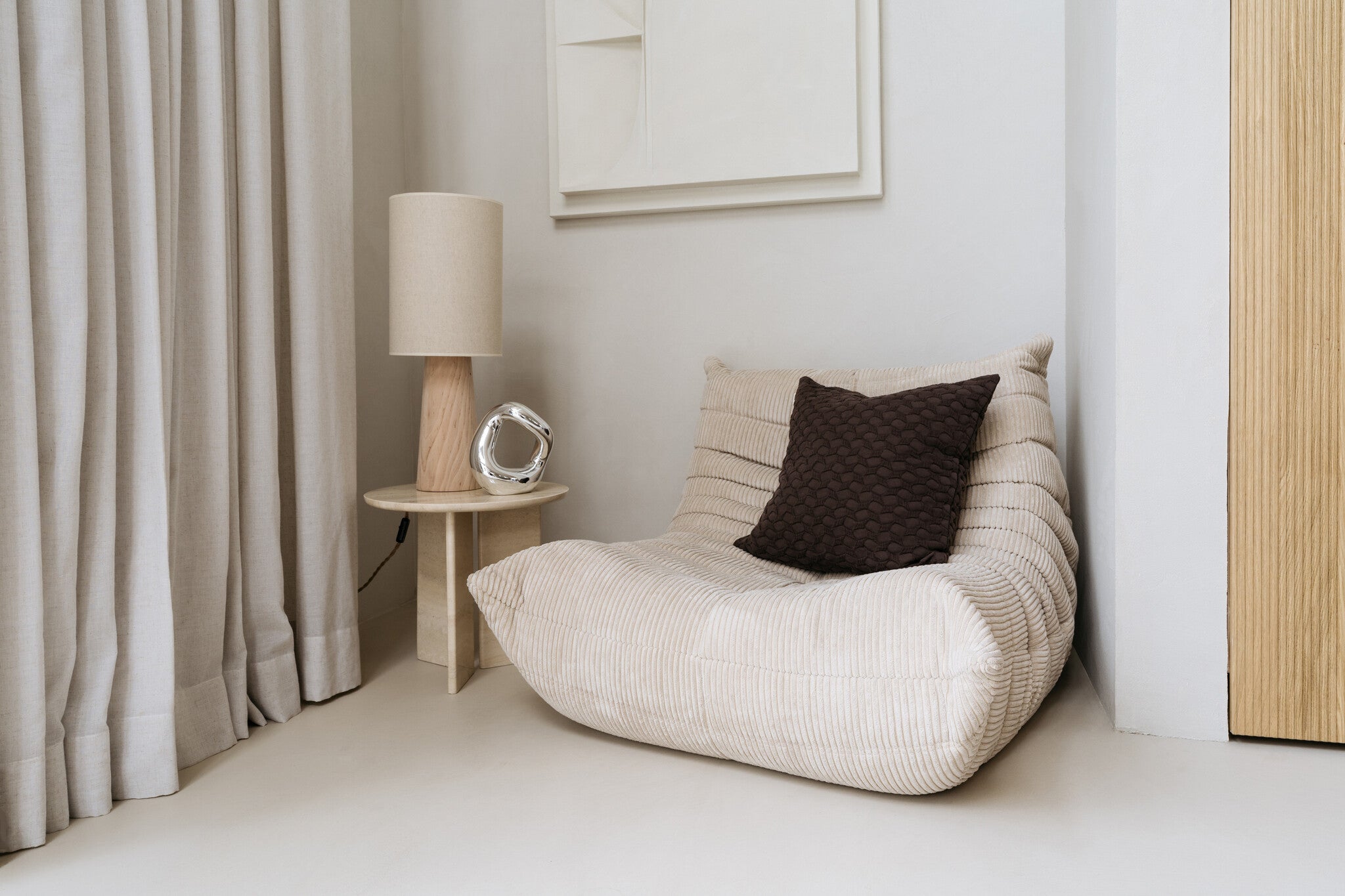 De rijke textuur en subtiele tint maken Ella veelzijdig inzetbaar binnen diverse woonstijlen, van modern en minimalistisch tot hotel chic of Japandi.