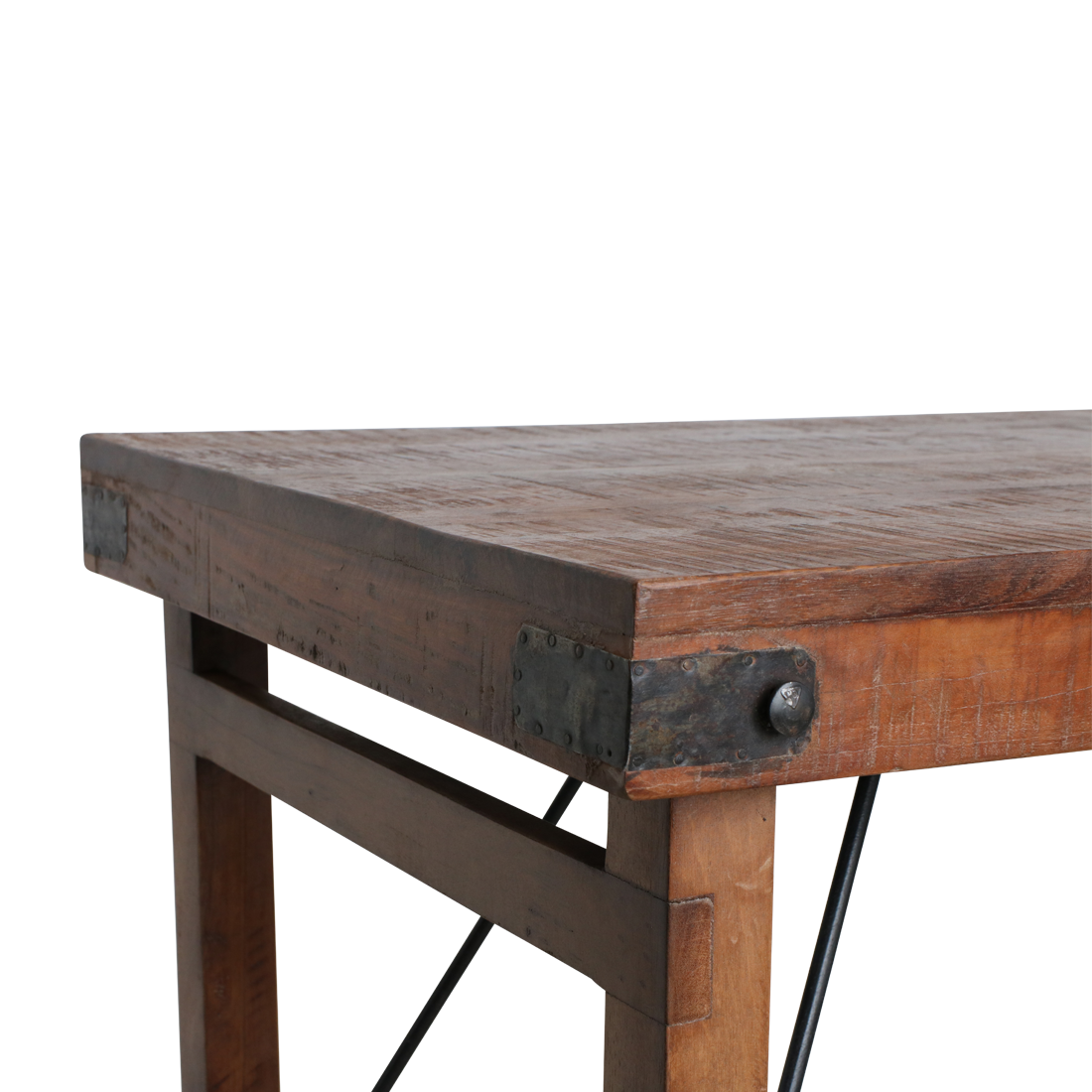Deze vintage bartafel vindt haar oorsprong in India, waar functionaliteit en eenvoud samenkomen met ambacht. Gemaakt van FSC-gerecycled hout en een robuust metalen onderstel draagt elke tafel zichtbare sporen van een vorig leven: een doorleefde patina, subtiele oneffenheden en gebruikssporen die het meubel zijn ziel geven.
