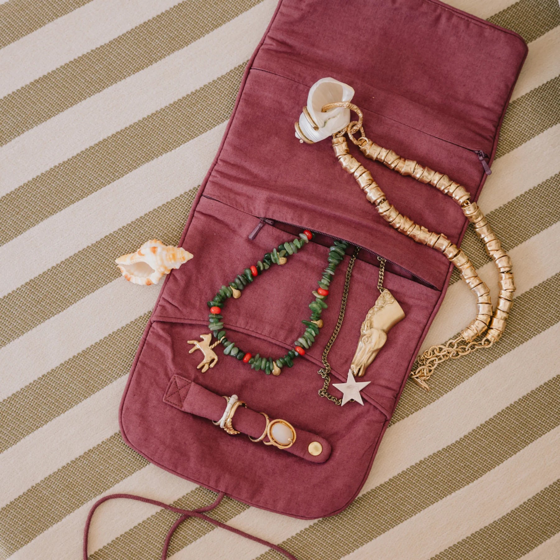 Waarom genoegen nemen met gewoon opbergen, als je je sieraden kunt verwennen met een tasje dat even mooi is als wat erin zit? Dit tasje vertelt het verhaal van bewuste luxe – gemaakt van biologisch katoen en linnen, duurzaam, zacht en met de hand vervaardigd.