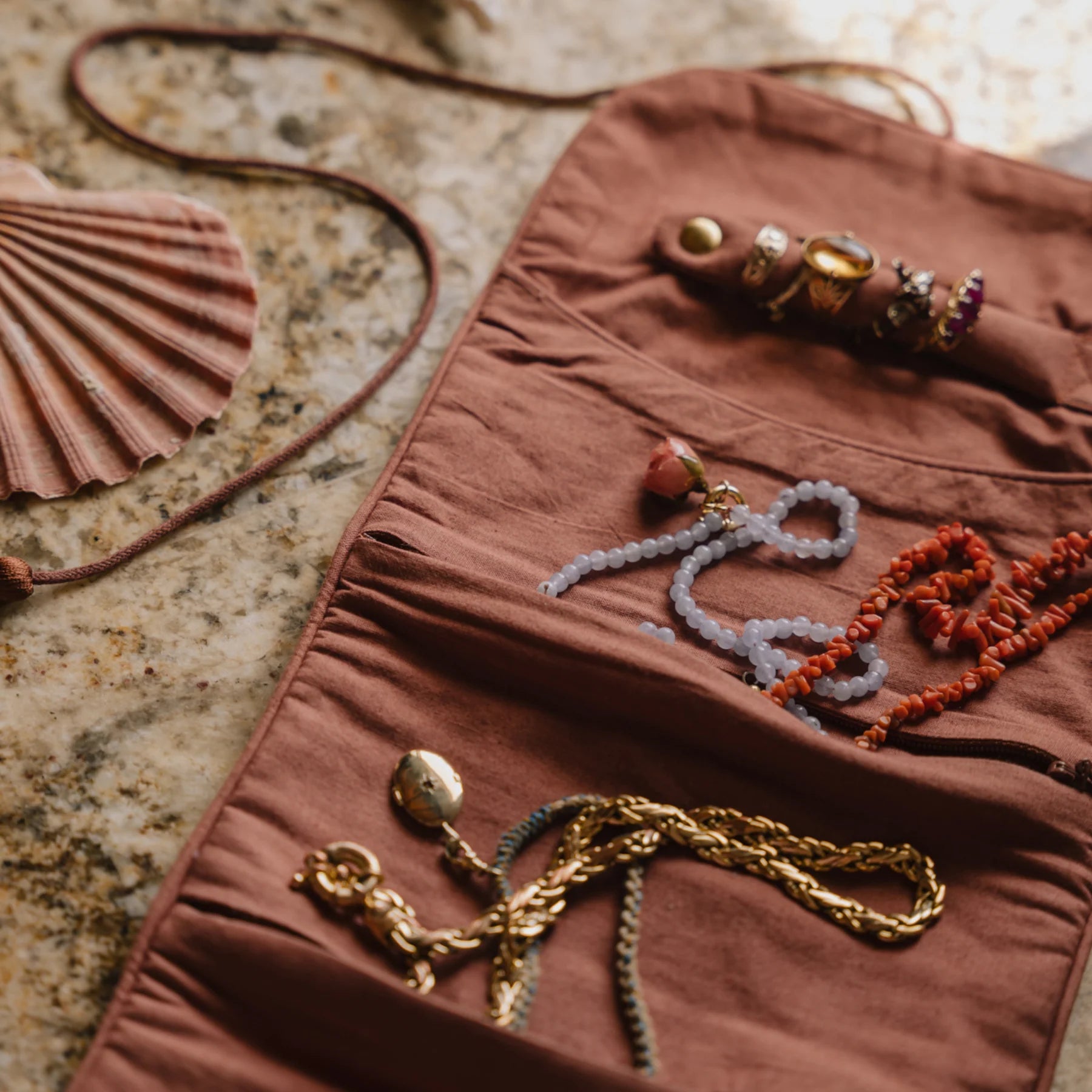 Bij Celebra la Vida geloven we dat de mooiste dingen in het leven die zijn die je elke dag opnieuw mag koesteren. Dit sieradentasje brengt dat gevoel tot leven. Gemaakt van biologisch katoen en linnen, ademt het tasje de kunst van slow living: zacht, duurzaam en met de hand vervaardigd. Perfect voor je meest geliefde sieraden – of je nu de wereld rondreist, een weekend weg gaat of gewoon je lade netjes wilt houden.