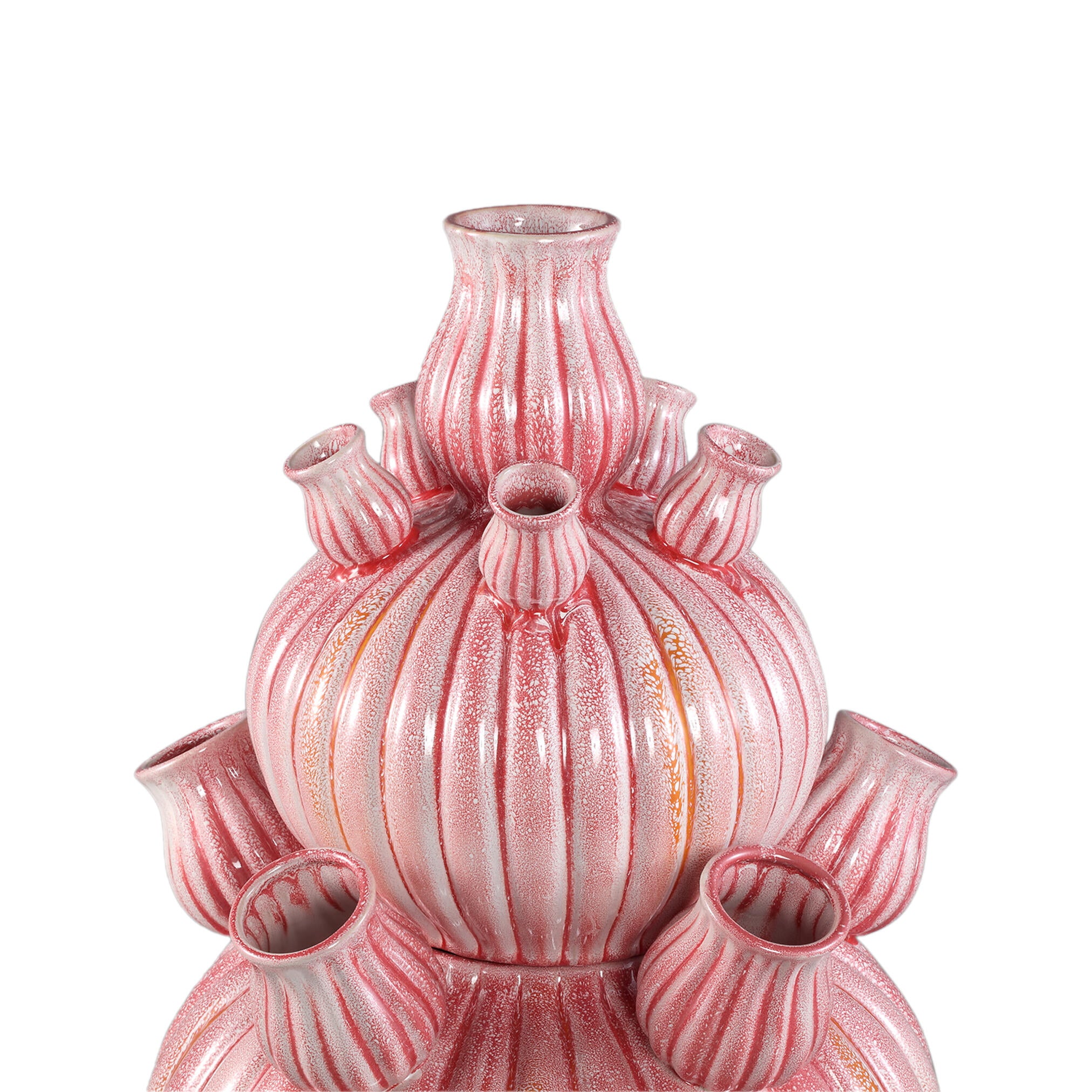 Nolou Pink Keramische Tulpenvaas geribbeld rond L – PTMD