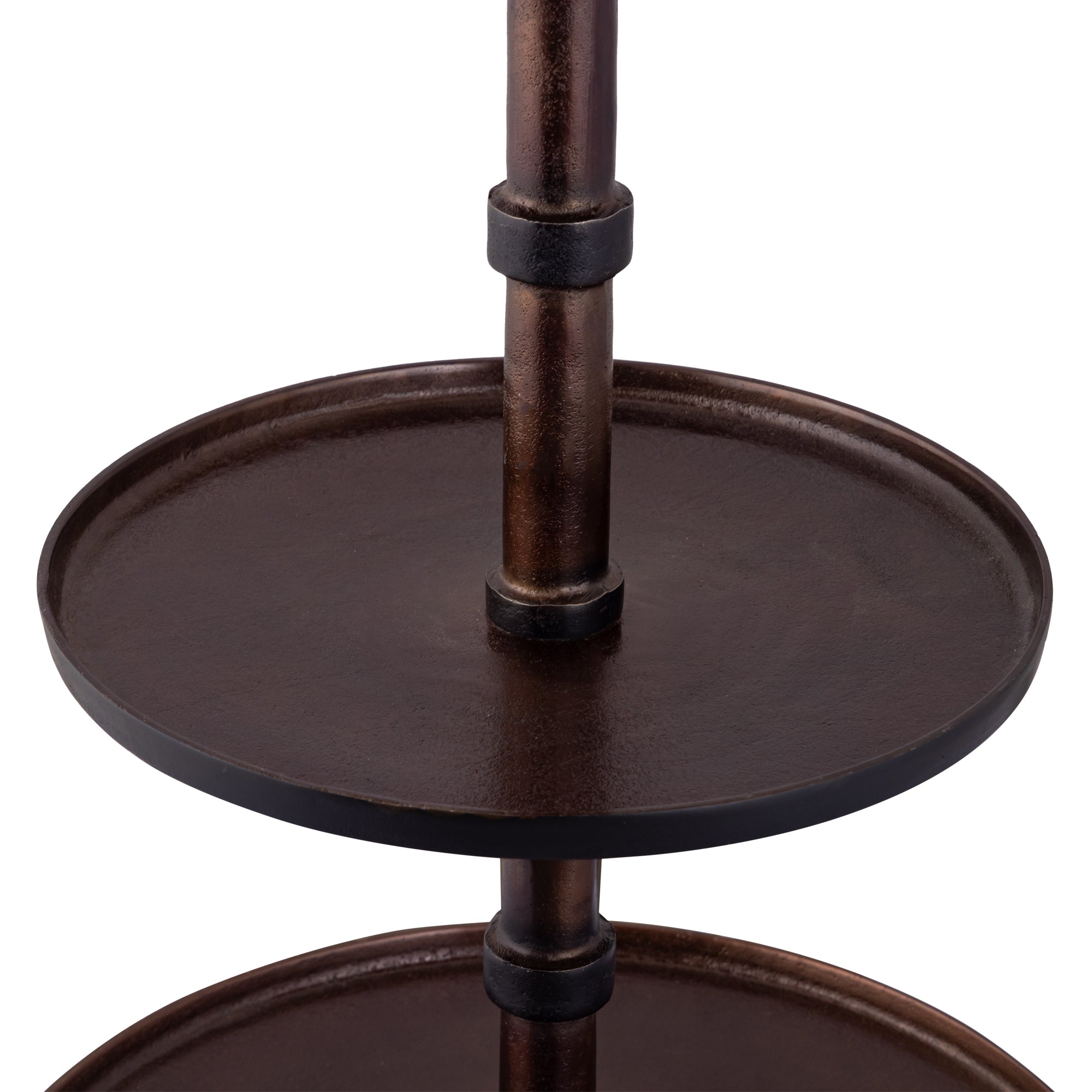 Voeg een stijlvolle blikvanger toe aan je interieur met de Glinda etagère van PTMD Collection. Met haar elegante vormgeving en luxe uitstraling in koperkleurig aluminium, is deze etagère perfect om jouw mooiste woonaccessoires, cupcakes of taartjes, geurkaarsen of glaswerk op te presenteren.