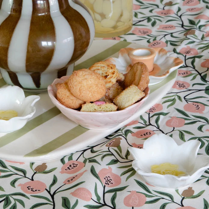Met zijn handgemaakte uitstraling en verfijnde afwerking brengt deze schaal direct karakter aan je tafelstyling – of het nu brunch, borrel of diner is.