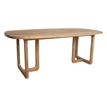 Invierno ovale eettafel van gerecycled FSC-teak: duurzaam, natuurlijk en met afgeronde randen. Verkrijgbaar in 200 cm (4–6 personen) en 240 cm (6–8 personen). Stevig en onderhoudsarm; regelmatig afnemen en af en toe behandelen met olie. Tijdloos, warm ontwerp voor elk interieur.