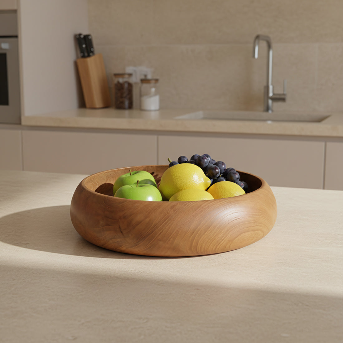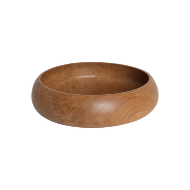 Soms is één object genoeg om een ruimte te laten ademen. De teakhouten schaal medium doet precies dat. Met haar zachte, ronde lijnen en opvallende vlammende nerfstructuur brengt zij rust en balans in het interieur. Het massieve teak voelt zijdezacht aan en ontwikkelt door de jaren heen een steeds rijkere, diepere uitstraling — een object dat mooier wordt naarmate het leeft.