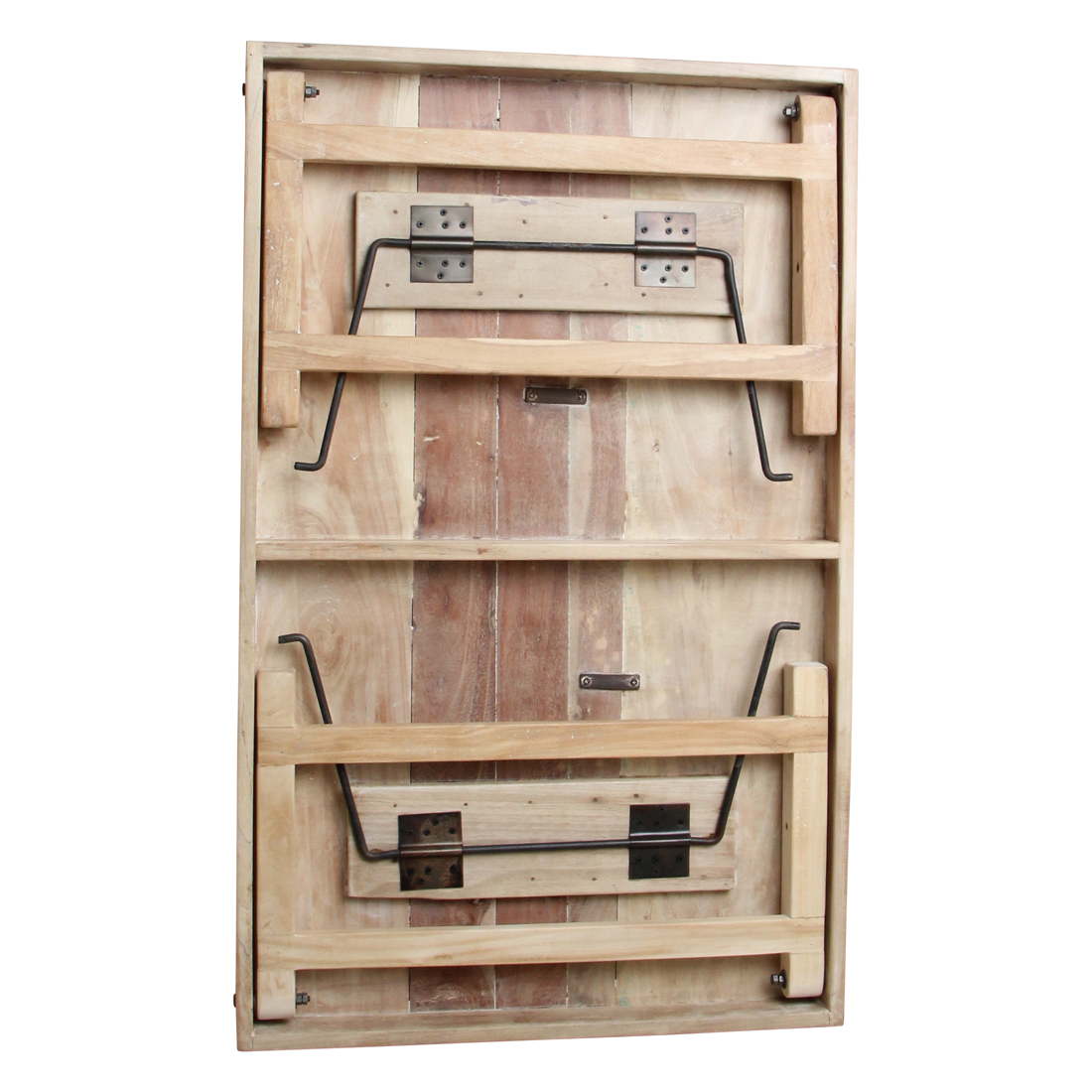 Deze tafel vertelt een verhaal van reizen, ambacht en praktisch gebruik. Het robuuste houten blad is afgewerkt met een zachte limewash (whitewash), waardoor de natuurlijke houtnerf zichtbaar blijft en het geheel een lichte, ontspannen uitstraling krijgt. De inklapbare constructie verwijst naar klassieke Indiase tafels die werden gebruikt voor diners, rituelen en samenkomsten – flexibel, sterk en gemaakt om te delen.