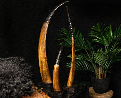 Plaats de hoorn als opvallend object in een open kast, op een dressoir of als middelpunt op een salontafel. Dankzij de solide montage op een hardhouten blok staat het object stevig en stijlvol in elke ruimte. Elk stuk is uniek, met subtiele verschillen in kleur en vorm, en draagt een verhaal van vakmanschap en respect voor natuur en dier. Bij Celebra la Vida waarderen we dit soort objecten die karakter en een ziel toevoegen aan je interieur.