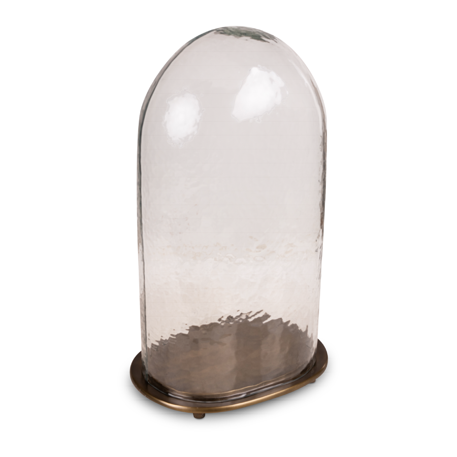 Stolp Boston nodigt uit tot stylen en verhalen vertellen. Plaats er een bijzonder object onder, een kunststuk, een tak, kaars of verzameling, en geef het een podium. Het transparante glas vangt het licht op een zachte manier, terwijl de antique gold voet zorgt voor warmte en een vleugje vintage luxe.